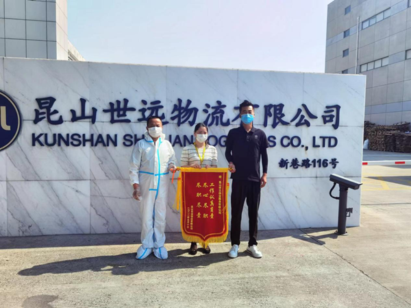 今年3月份以来,昆山多地散发性新冠疫情反弹,对当地的物流企业正常经营影响很大,驻点世远物流公司的博立保安团队全体保安员克服了人手少、任务重、防疫紧的种种困难,严格按照昆山市防疫指挥部的要求:进出车辆严密消杀、查验车驾人员的苏康码和核酸检测记录、测温、检查佩戴口罩、管控人员不聚集等,发现异常立即报告主管部门,并配合做好运送隔离等工作,特别是疫情管控期间,坚守岗位,维护正常的安全秩序,受到世远物流公司领导和员工的赞扬,特赠送锦旗一面表示感谢!